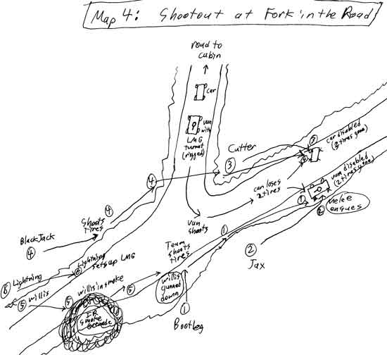 LMG bursts. As Willis bleeds, Lightning disables the van by