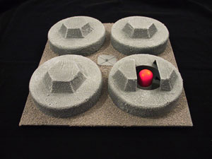 The dilemma here is that a missile silo is generally not that exciting of a feature. The hatches are flush with the ground, the missiles are not visible, and there are no buildings above ground to fall prey to enemy missiles. So I decided to raise the silos slightly and, so folks can figure out what it's supposed to be, to have one silo open as if in preparation to launch. The added benefit is that the raised silo features make the terrain tactically useful for cover instead of just eye candy. Materials