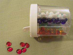 There are a lot of great things that can be co-opted for gaming. I will try to make a list here of the more interesting things I come across. Pente PiecesI find these to be very handy. Even if you have miniatures for every last vermin, you may need markers for grenades, spell targets, debris, the magic widget, etc. The pieces can be found at many game stores. The container I found at The Container Store; I believe it was a kitchen accessory.